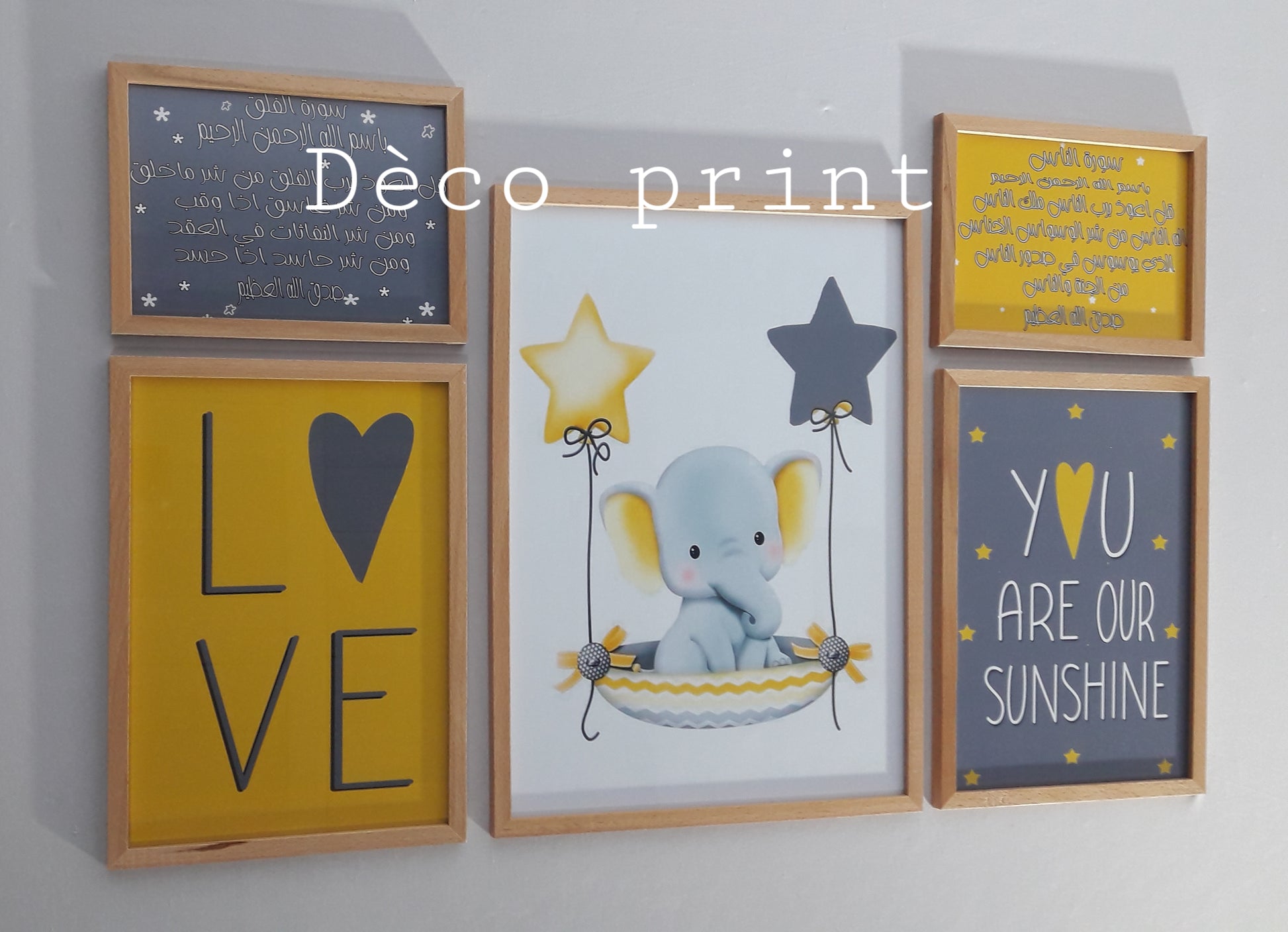 شكيلة فنية لمجموعة لوحات جدارية متكونة من 05 إطارات ذات جودة عالية خاصة بغرف الاطفال