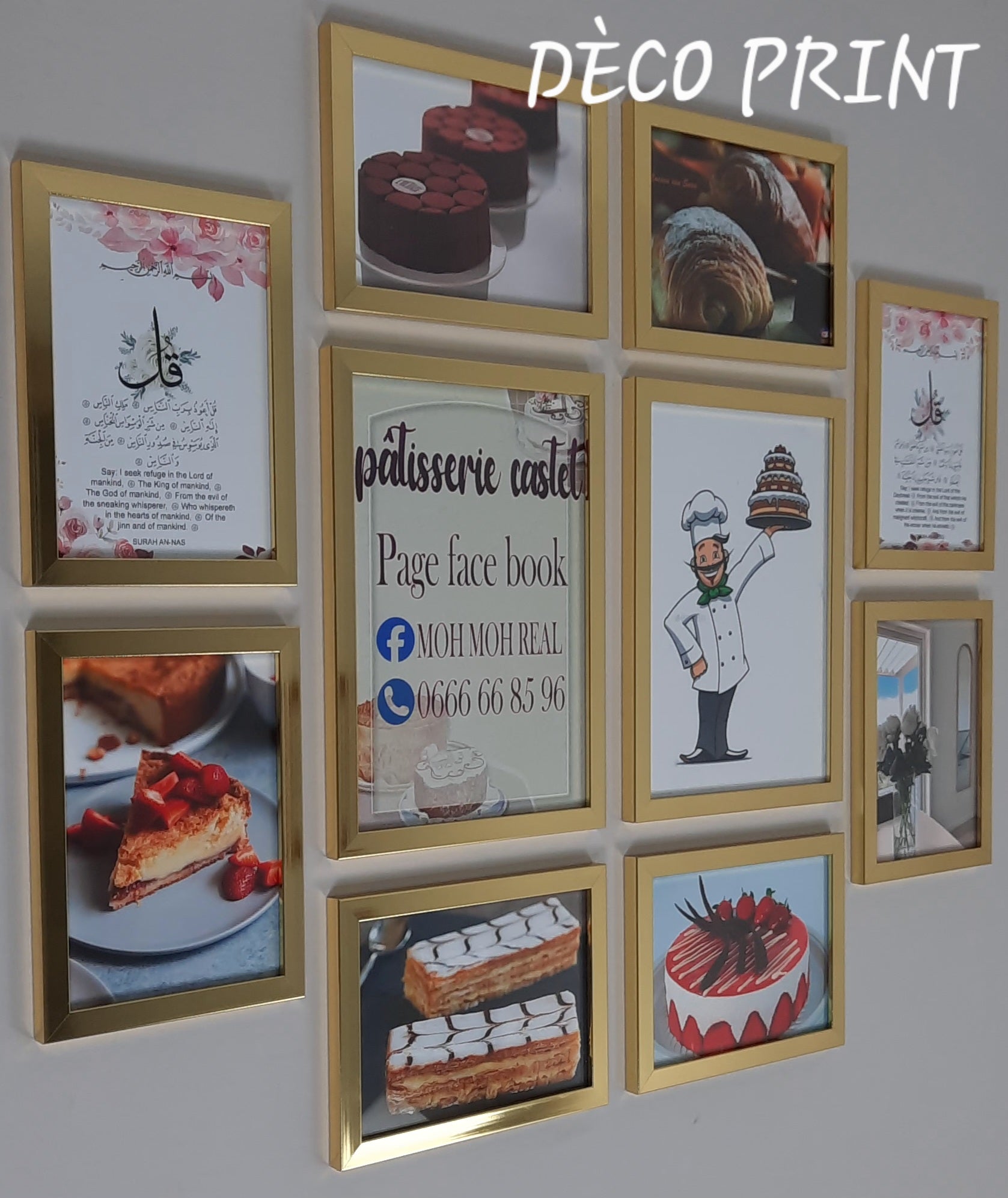 شكيلة فنية لمجموعة لوحات جدارية متكونة من 10 إطارات ذات جودة عالية خاصة بمحل بيع حلويات و باتيسري