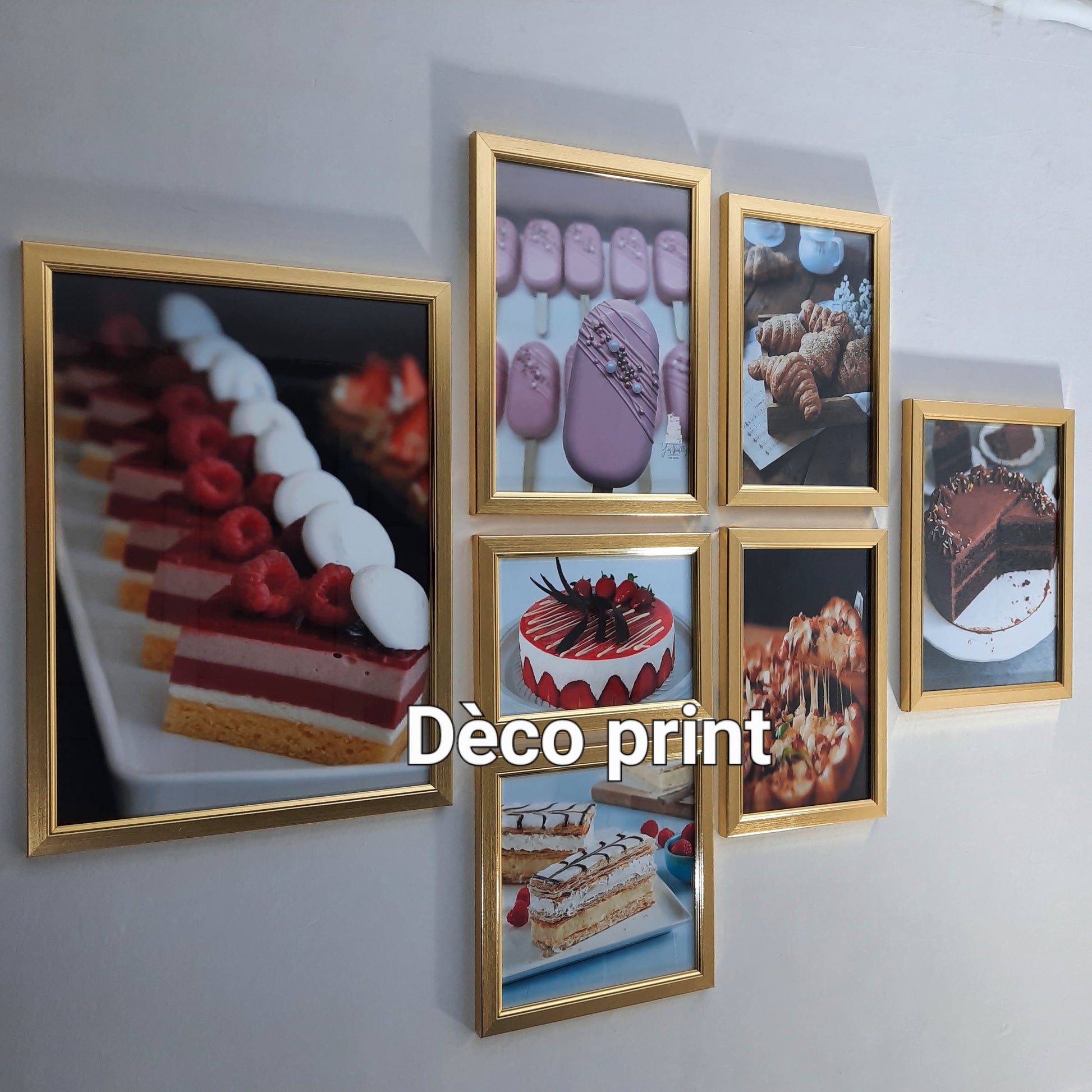 شكيلة فنية لمجموعة لوحات جدارية متكونة من 07 إطارات ذات جودة عالية خاصة بمحل بيع حلويات و باتيسري