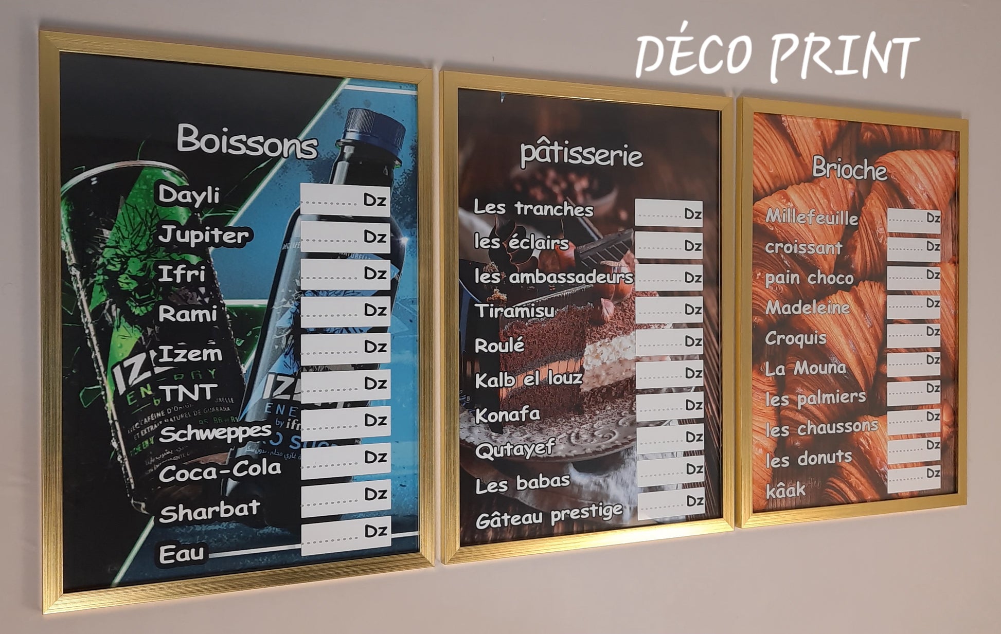 شكيلة فنية لمجموعة لوحات جدارية متكونة من 03 إطارات ذات جودة عالية خاصة بمحل بيع حلويات و باتيسري