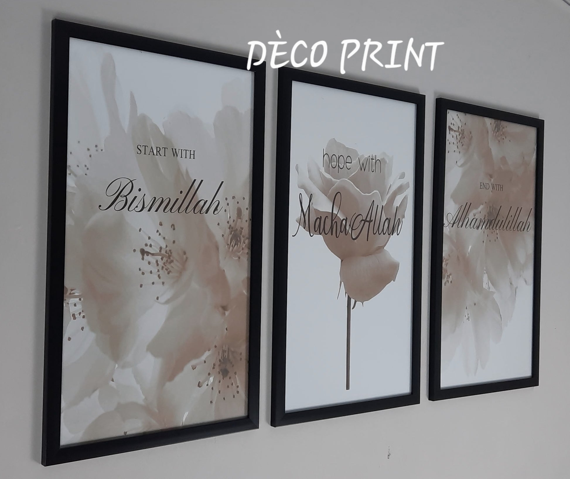 شكيلة فنية لمجموعة لوحات جدارية متكونة من 03 إطارات ذات جودة عالية خاصة بصالون و الرواق