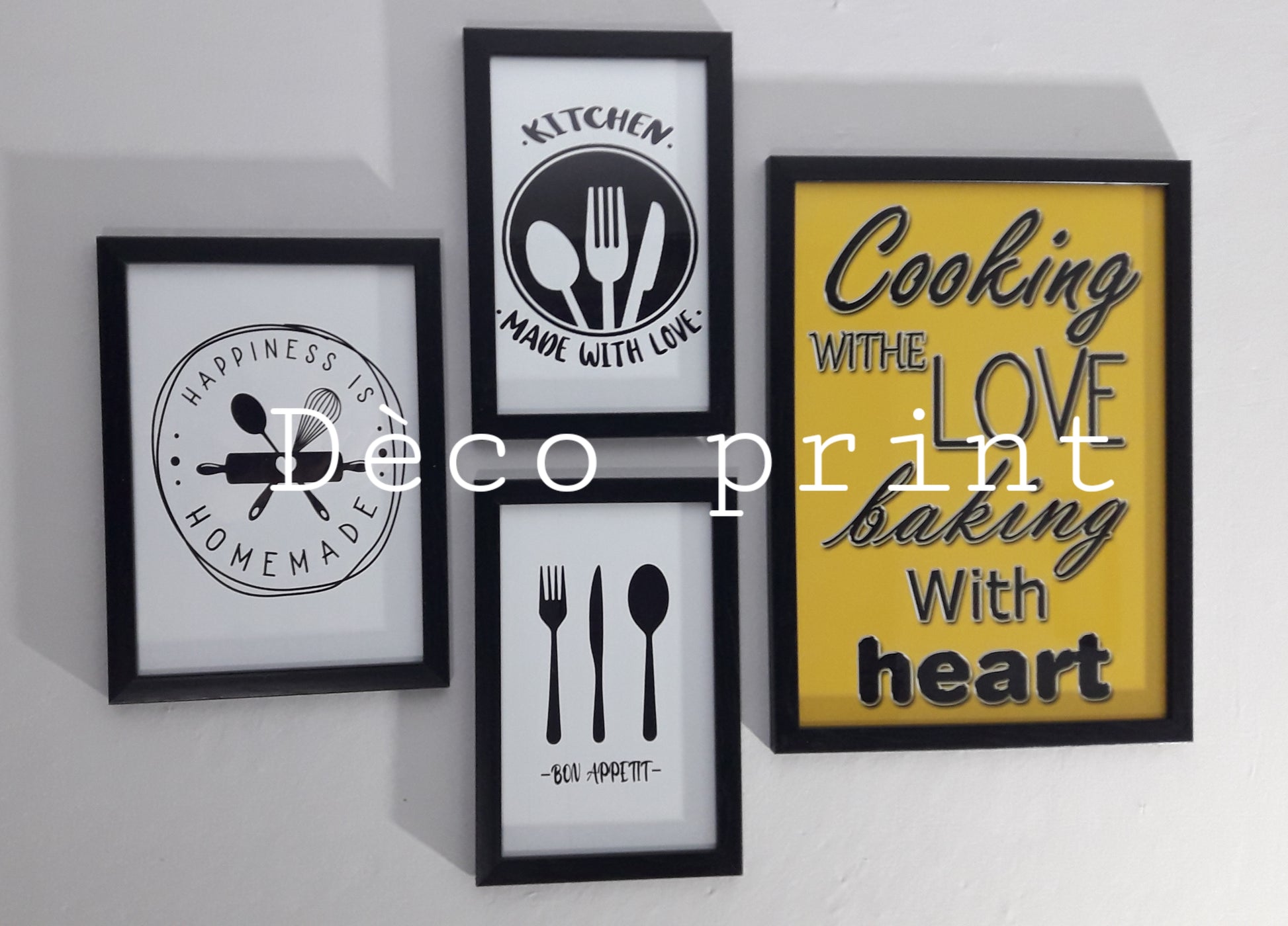 شكيلة فنية لمجموعة لوحات جدارية متكونة من 04 إطارات  ذات جودة عالية خاصة  بمطبخ