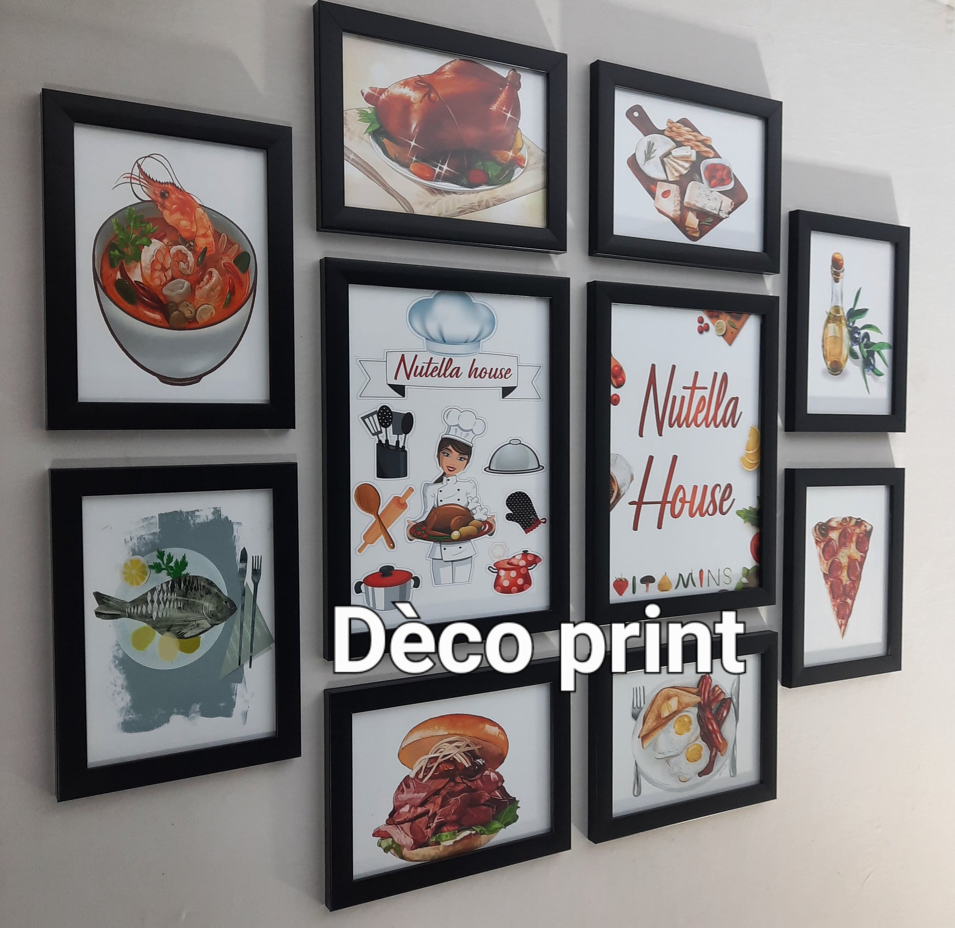 شكيلة فنية لمجموعة لوحات جدارية متكونة من 10 إطارات ذات جودة عالية خاصة بمطعم اكل سريع