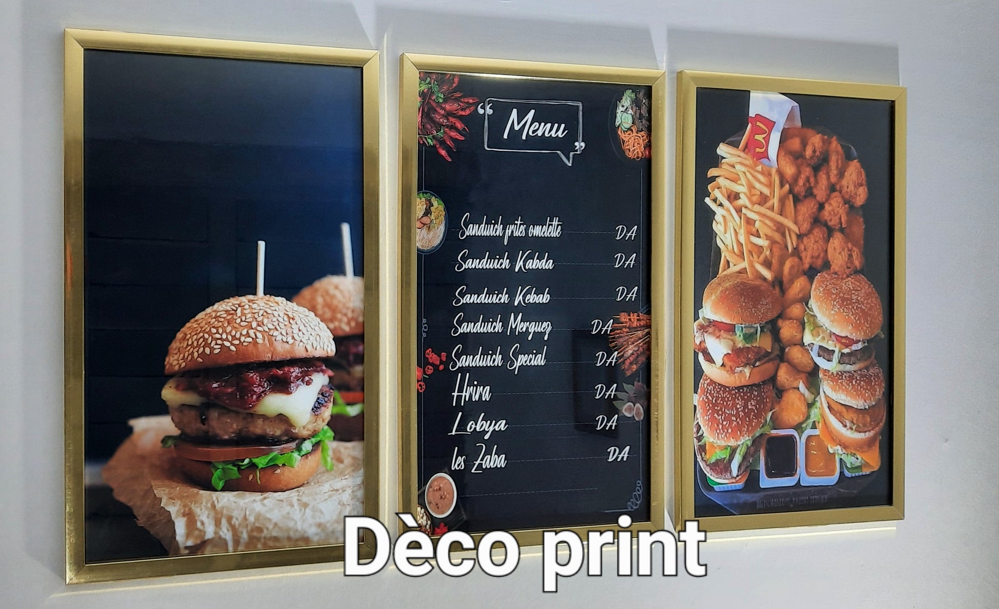 شكيلة فنية لمجموعة لوحات جدارية متكونة من 03 إطارات ذات جودة عالية خاصة بمطعم اكل سريع