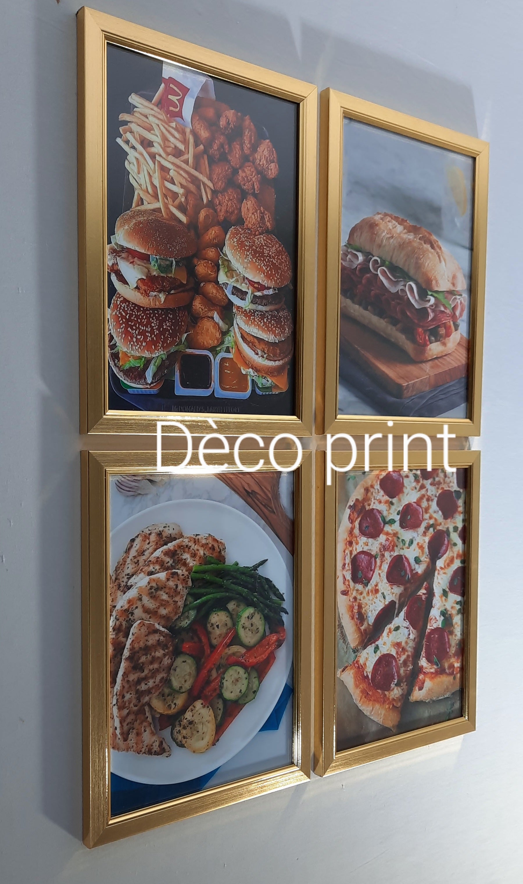 شكيلة فنية لمجموعة لوحات جدارية متكونة من 04 إطارات ذات جودة عالية خاصة بمطعم اكل سريع
