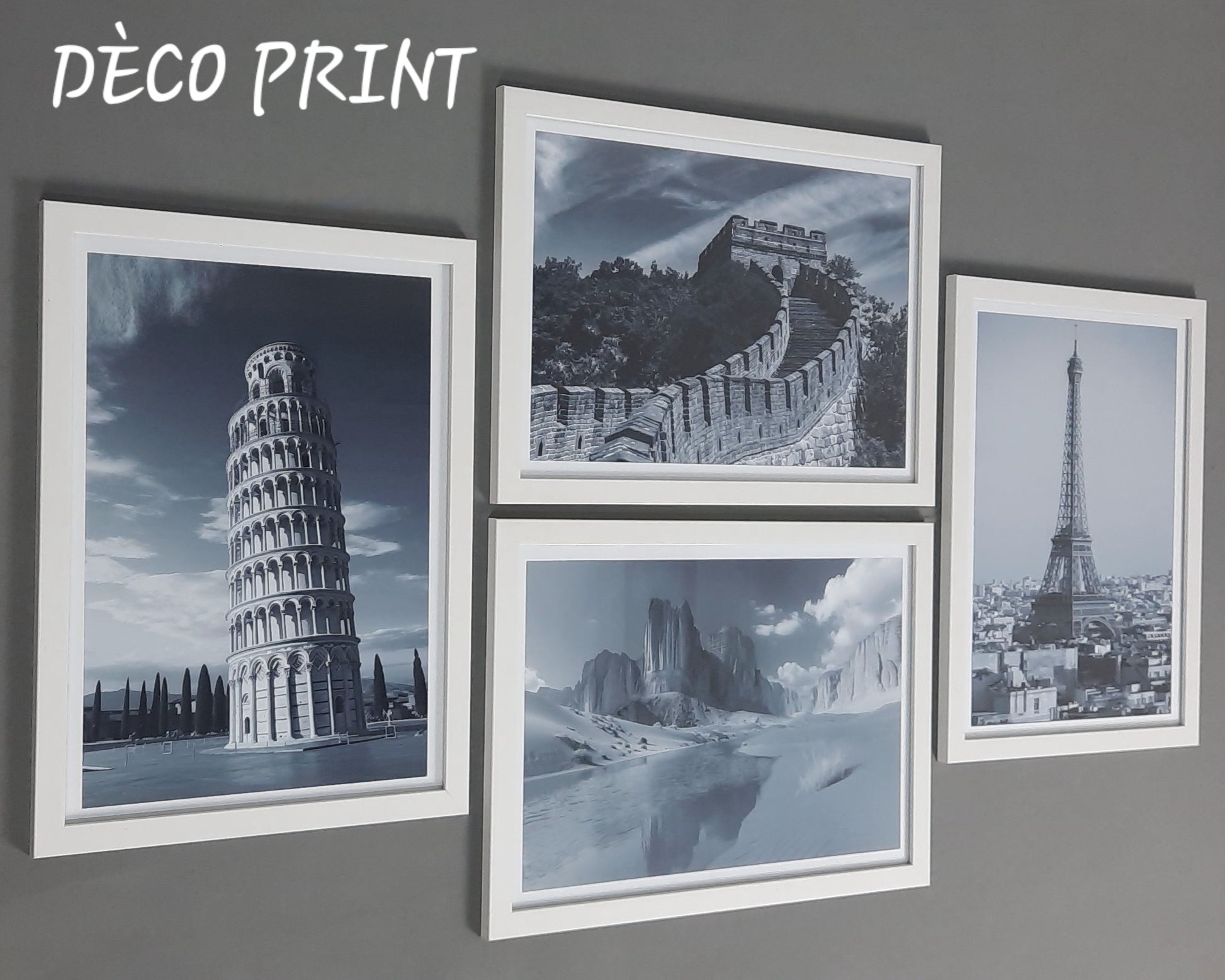 صور ملهمة لمعارف وسفريات حول العالم، مطبوعة بجودة عالية ذات واجهة زجاج أنيق يضيف لمسة فخامة لمكتبك أو وكالتك. ✈️