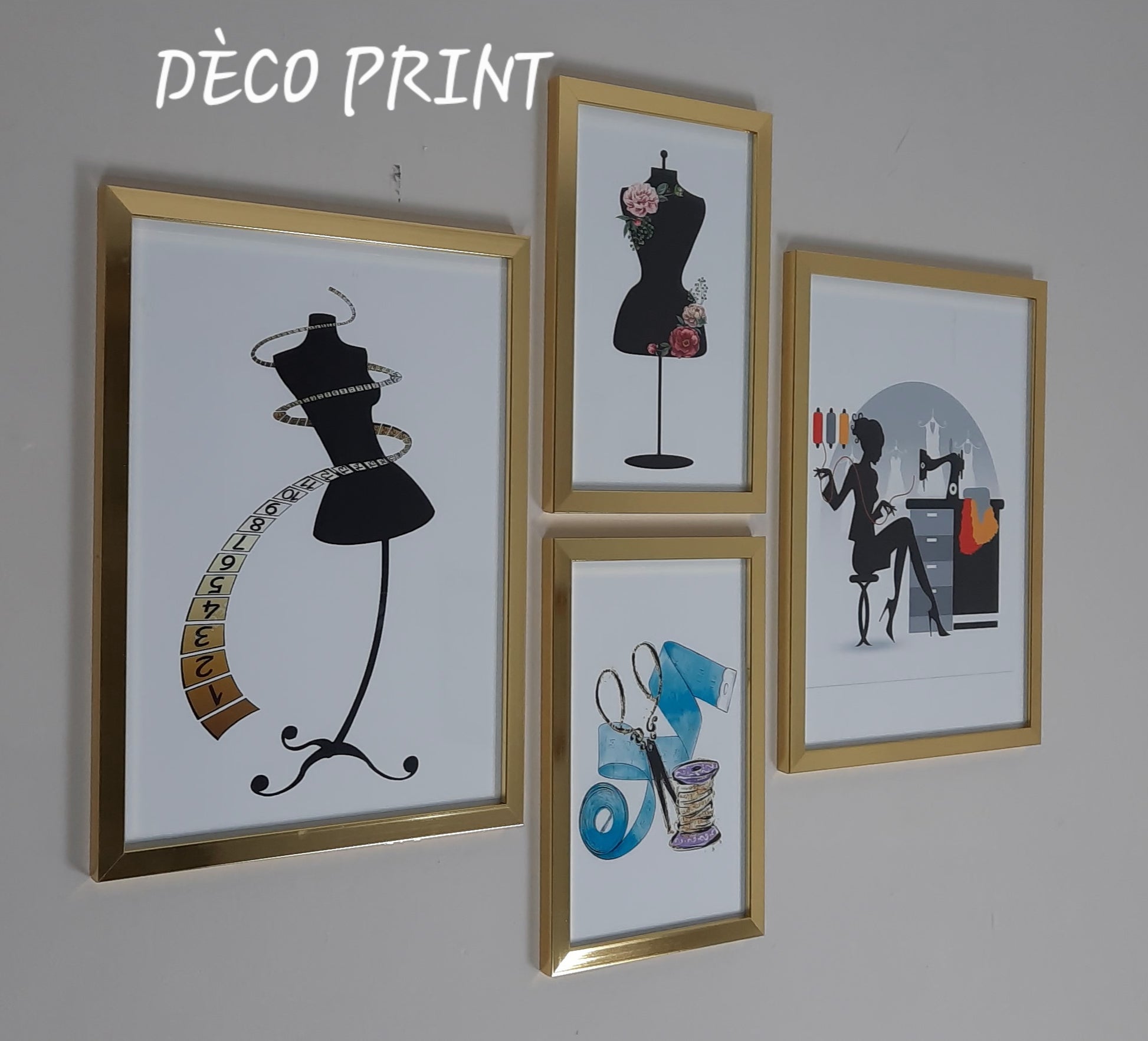 شكيلة فنية لمجموعة لوحات جدارية متكونة من 04 إطارات ذات جودة عالية خاصة بمحل خياطة