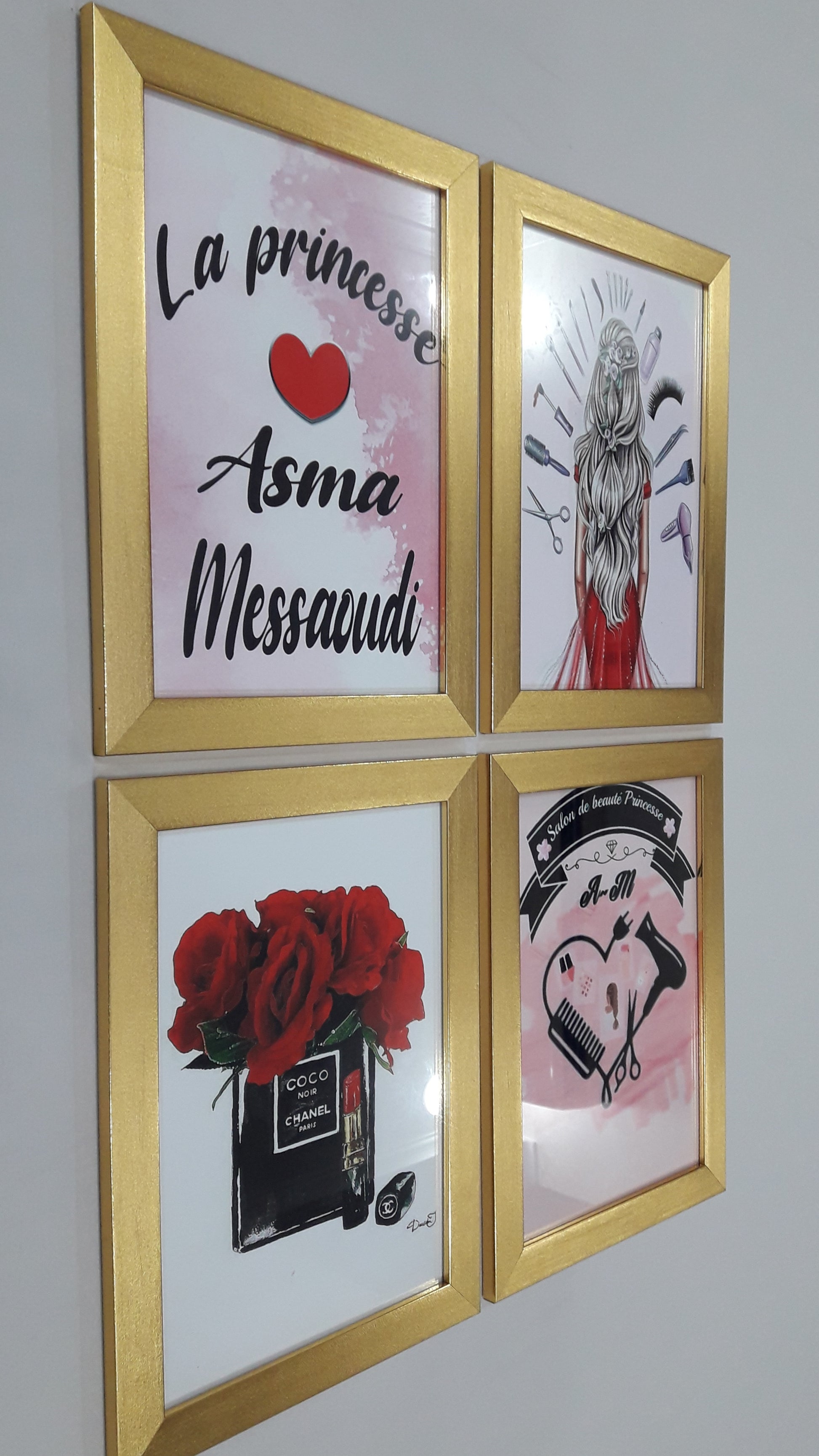 شكيلة فنية لمجموعة لوحات جدارية متكونة من 04 إطارات  ذات جودة عالية خاصة بصالونات حلاقة النساء