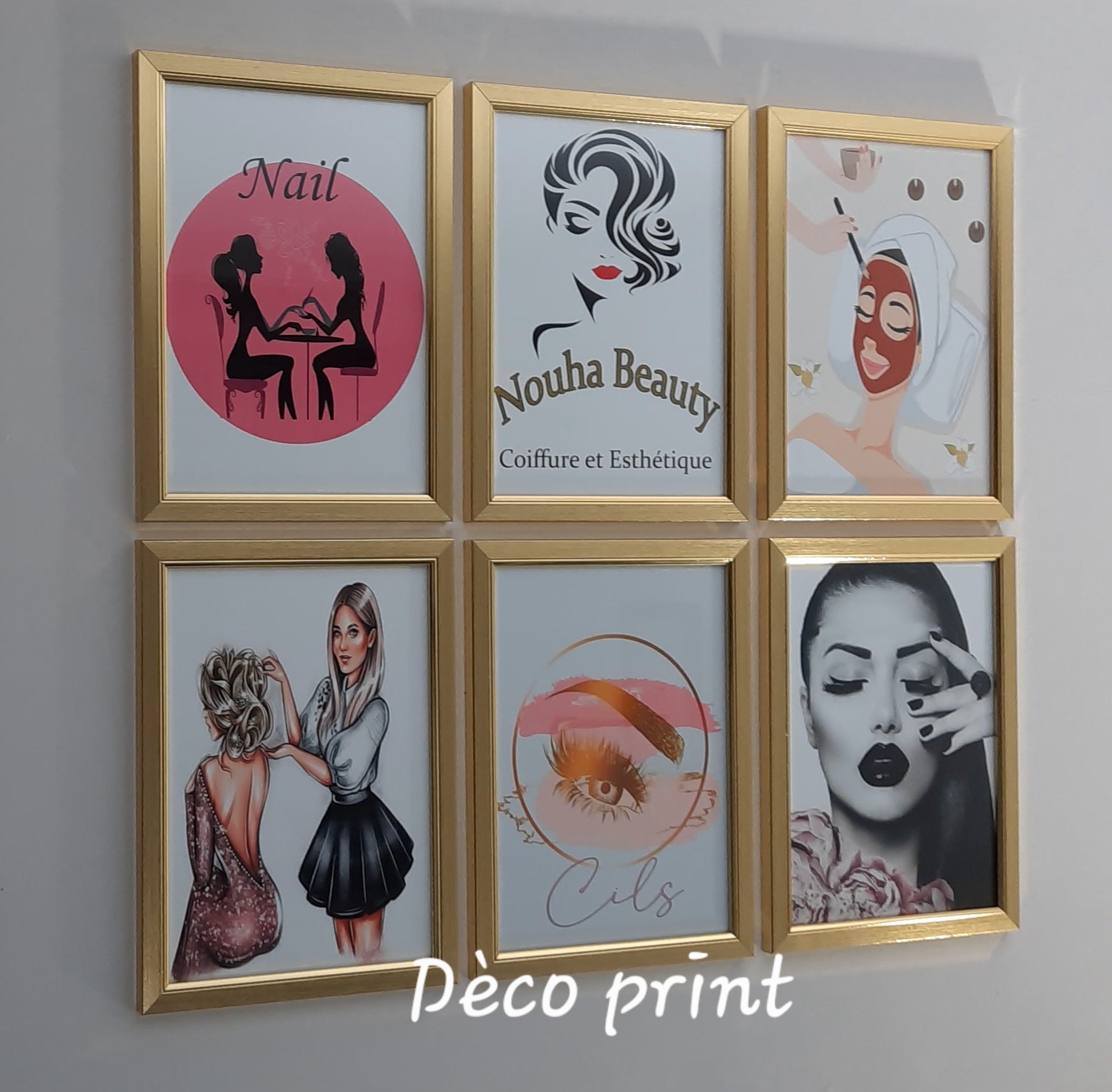 شكيلة فنية لمجموعة لوحات جدارية متكونة من 06 إطارات ذات جودة عالية خاصة بصالونات حلاقة النساء