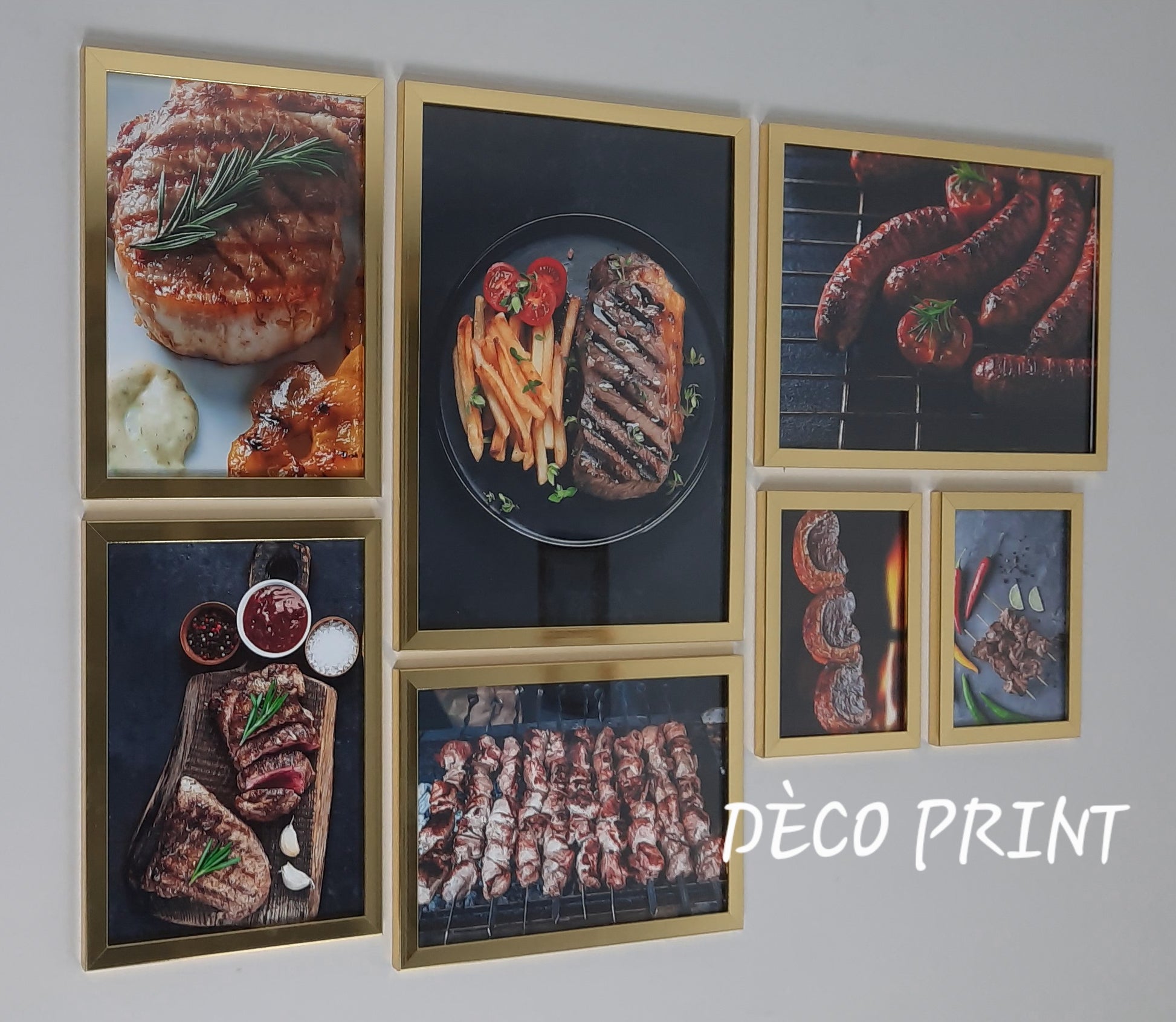 شكيلة فنية لمجموعة لوحات جدارية متكونة من 07 إطارات ذات جودة عالية خاصة بمطعم شواء