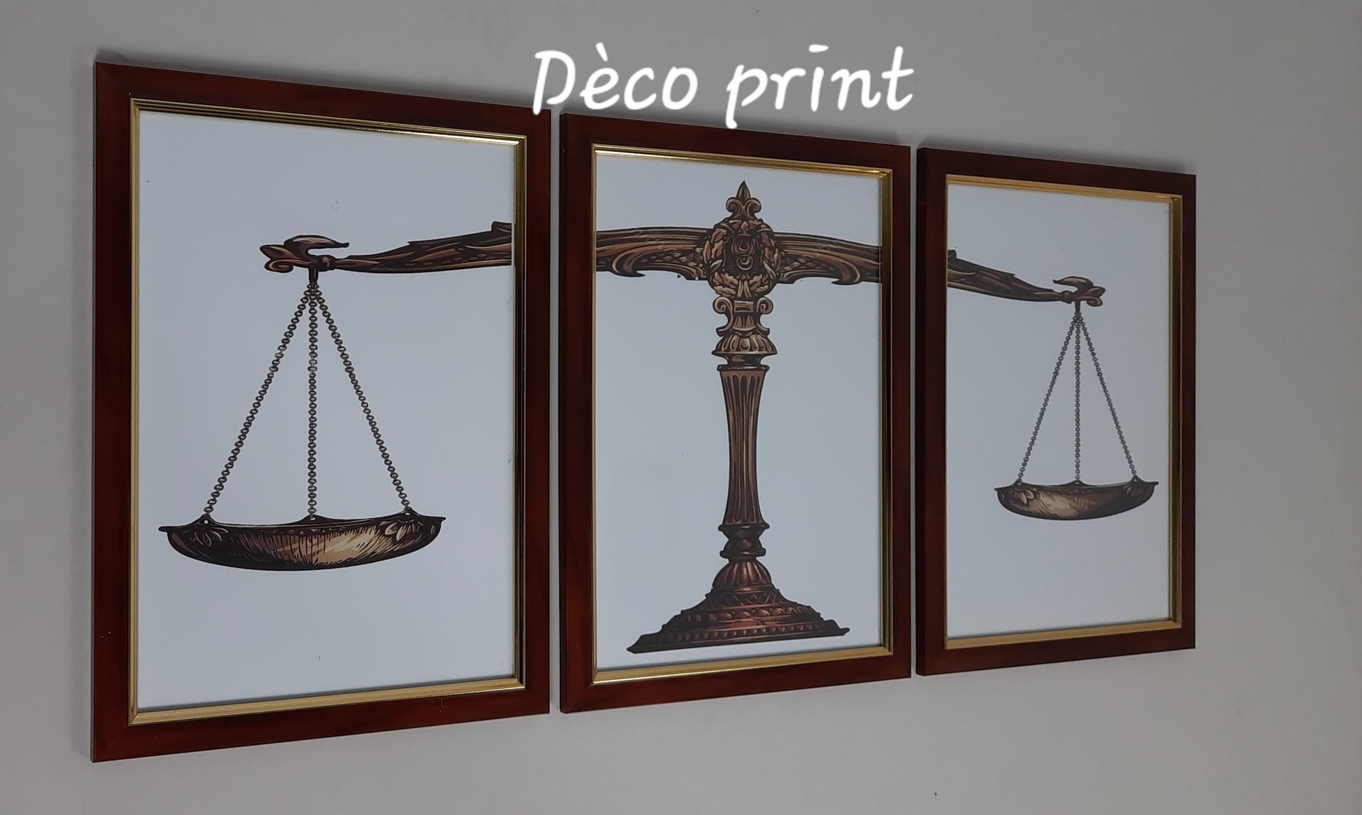 شكيلة فنية لمجموعة لوحات جدارية متكونة من 03 إطارات ذات جودة عالية خاصة بمكتب المحامي