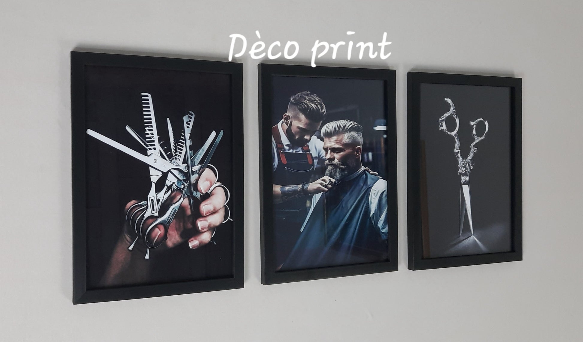 تشكيلة فنية لمجموعة لوحات جدارية متكونة من 03 إطارات ذات جودة عالية خاصة بصالون حلاقة للرجال