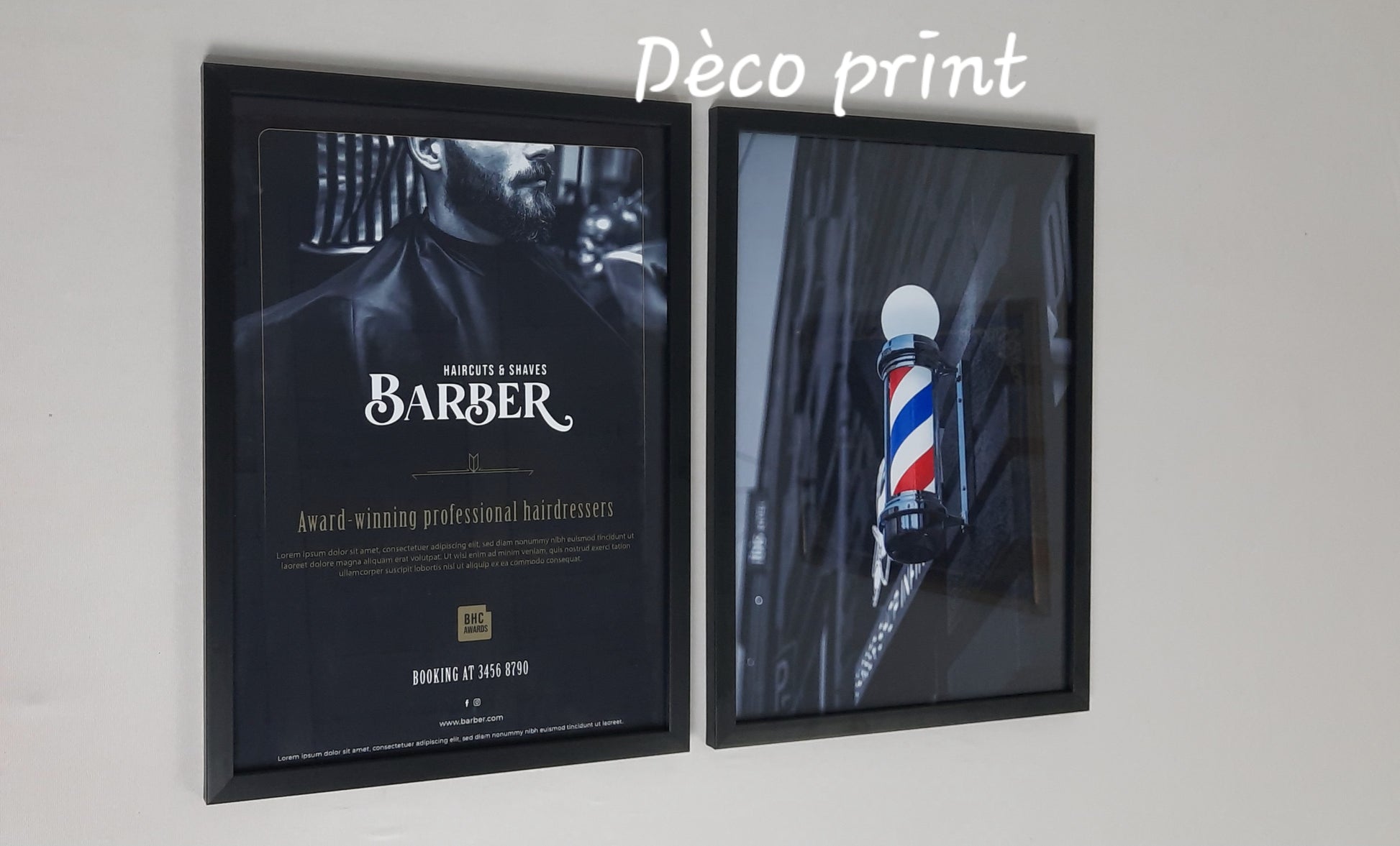 تشكيلة فنية لمجموعة لوحات جدارية متكونة من 02 إطارات ذات جودة عالية خاصة بصالون حلاقة للرجال