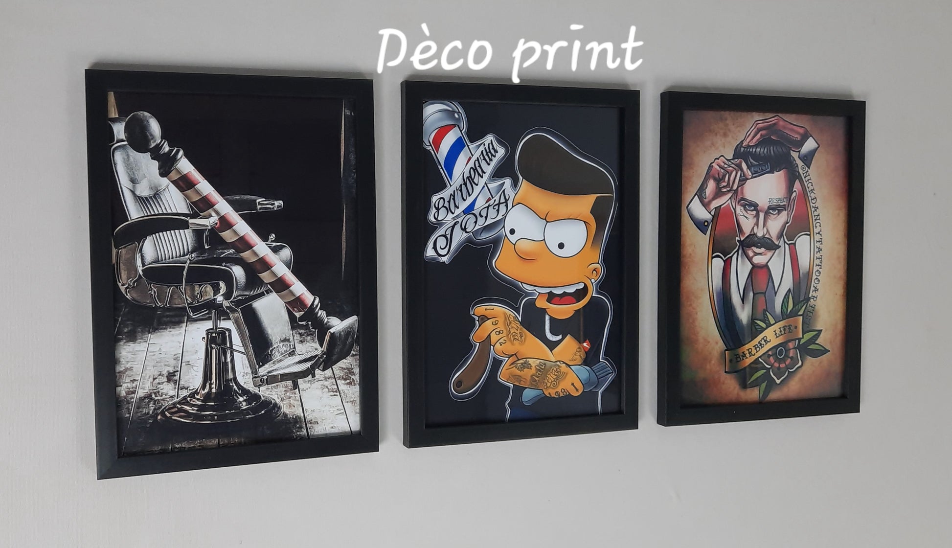 تشكيلة فنية لمجموعة لوحات جدارية متكونة من 03 إطارات ذات جودة عالية خاصة بصالون حلاقة للرجال