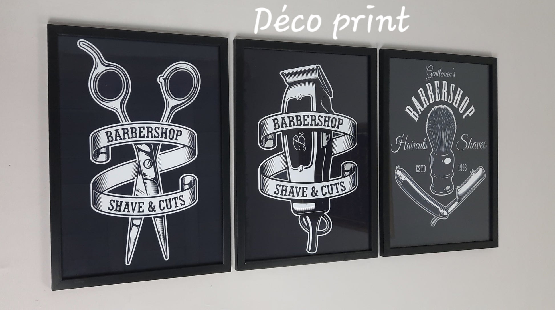 تشكيلة فنية لمجموعة لوحات جدارية متكونة من 03 إطارات ذات جودة عالية خاصة بصالون حلاقة للرجال