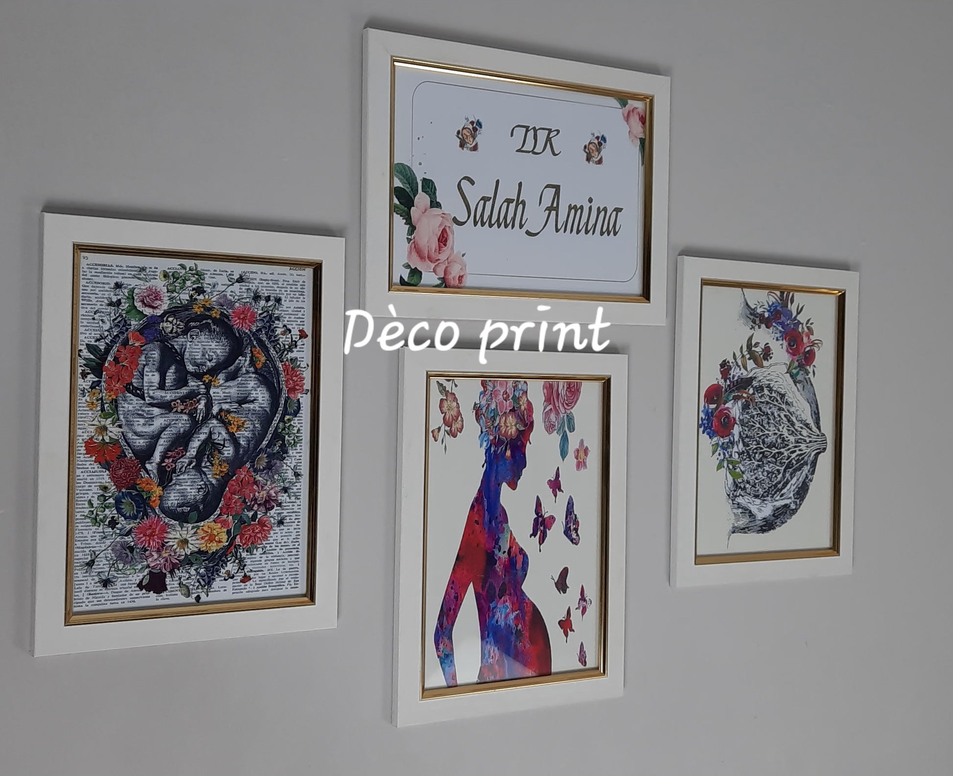شكيلة فنية لمجموعة لوحات جدارية متكونة من 04 إطارات ذات جودة عالية خاصة بعيادة طب النساء