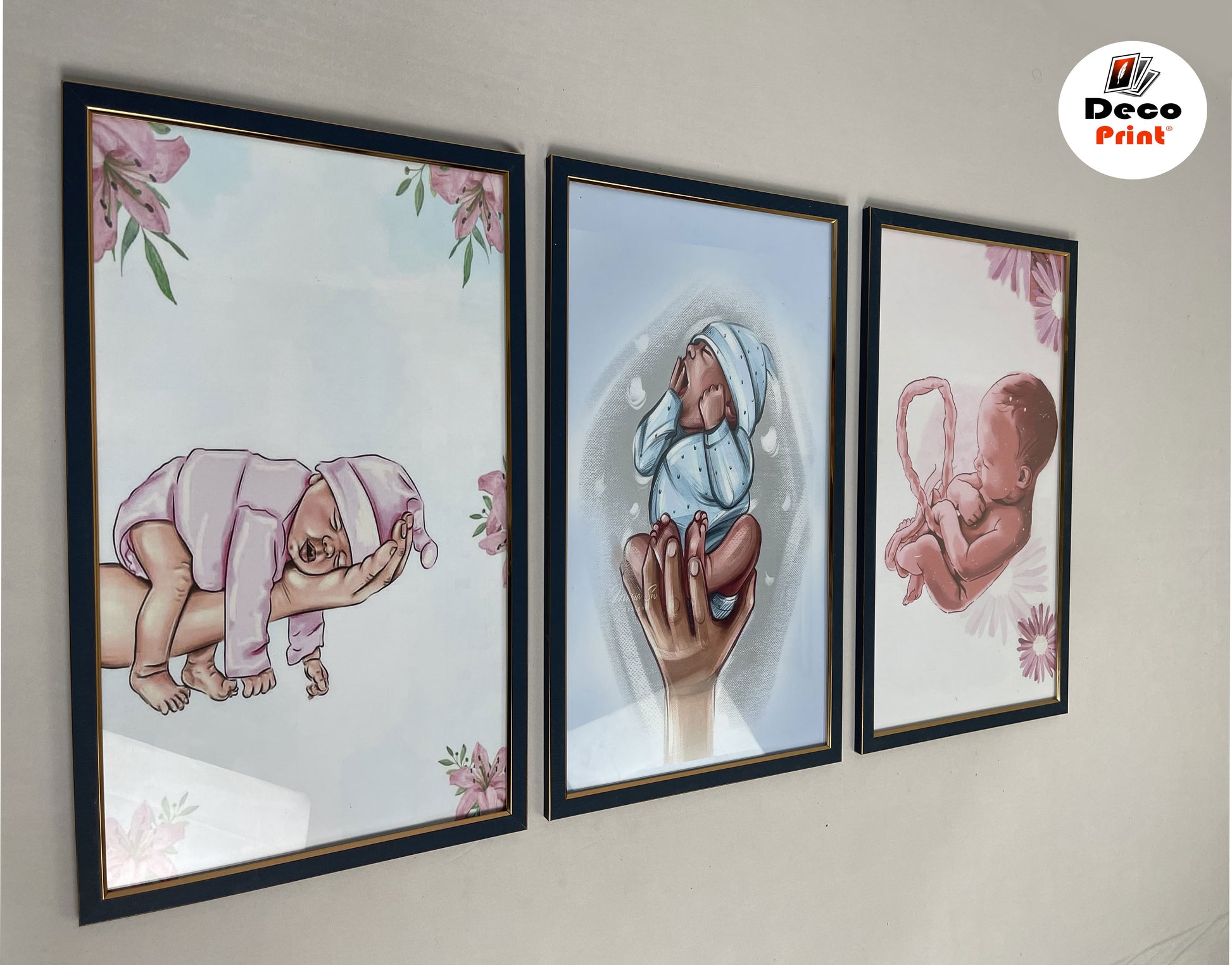 شكيلة فنية لمجموعة لوحات جدارية متكونة من 03 إطارات ذات جودة عالية خاصة بعيادة طب النساء