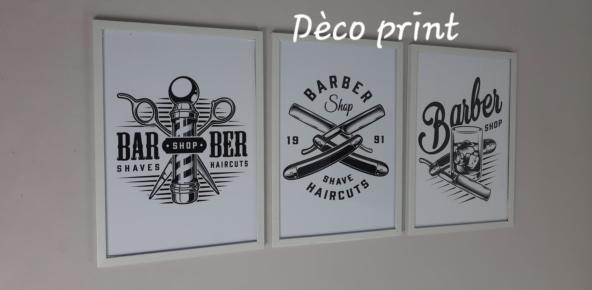 تشكيلة فنية لمجموعة لوحات جدارية متكونة من 03 إطارات ذات جودة عالية خاصة بصالون حلاقة للرجال